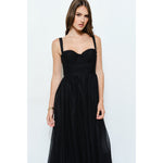 Mini Dot Tulle Bustier Midi Dress - Black