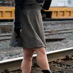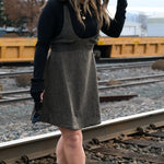 It's a mini dress with endless styling possibilities! Layer under and over, pair with tall boots or stilettos -- you can't go wrong. A lovely scoop neckline, empire waist, and ribbon tie closure with circular hardware at back.