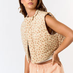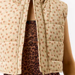 Ditsy Floral Corduroy Puffer Vest - Taupe