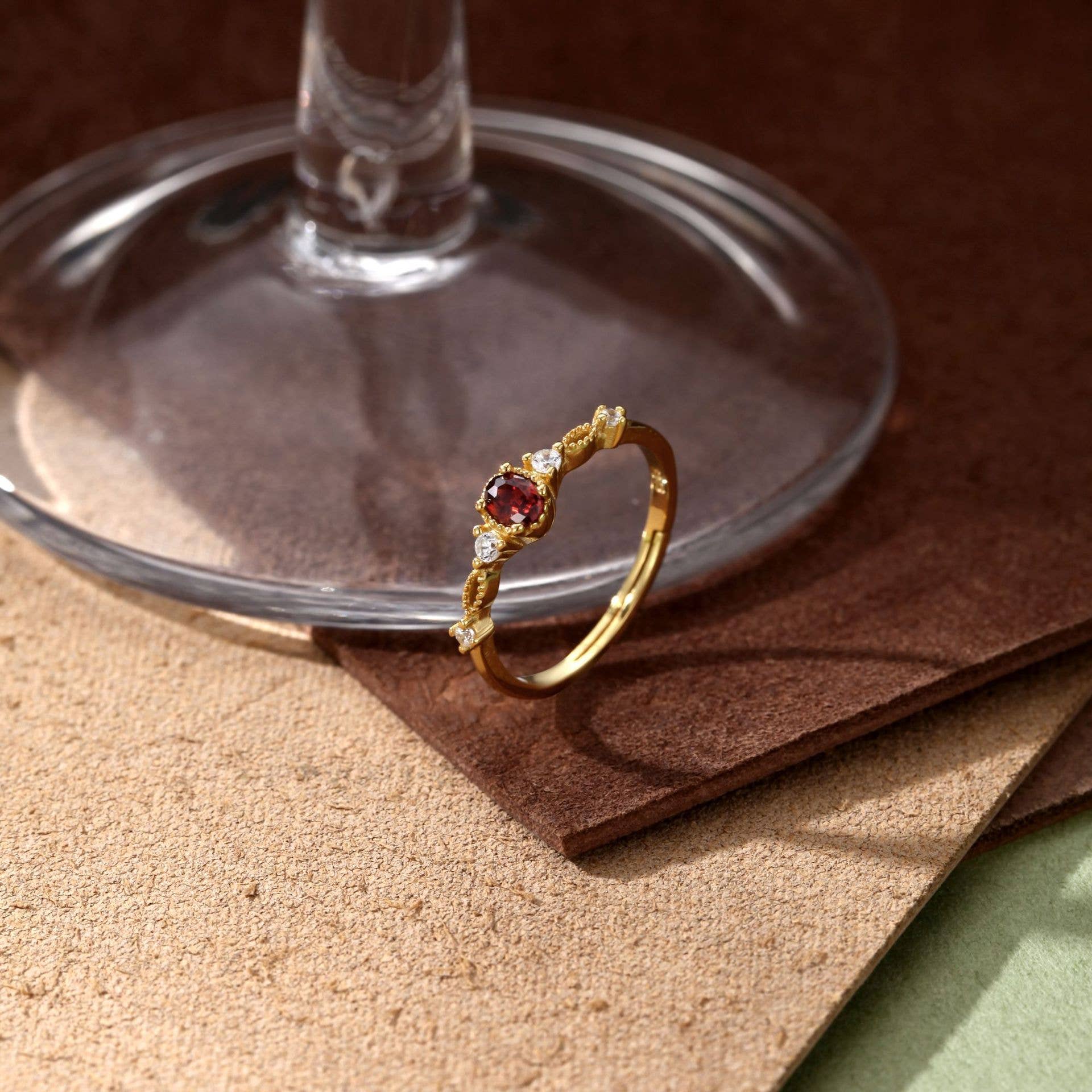14k Gold Plated Antique Green Zircon Ring
