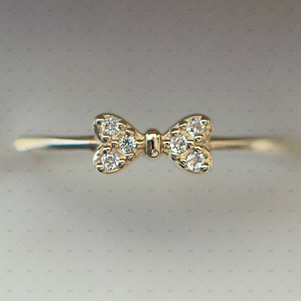 Silver 14k Gold Plated Bow Zirconia Ring