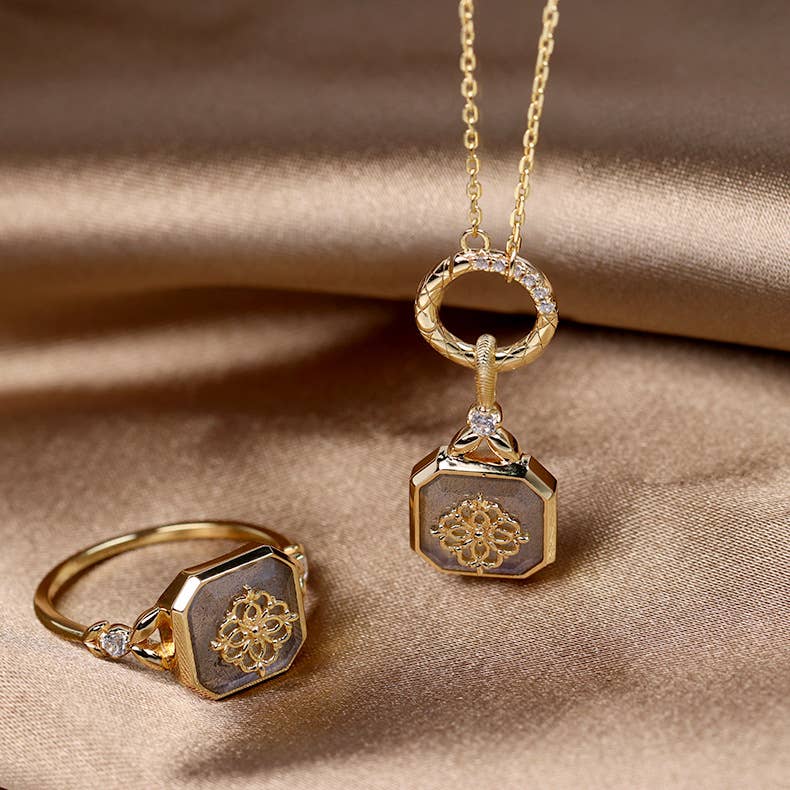 Sterling Silver K Gold-plated Gray-blue Labradorite Ring