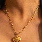 18K Gold Dipped Stainless Steel Paperclip Chain Necklace with Heart Pendant