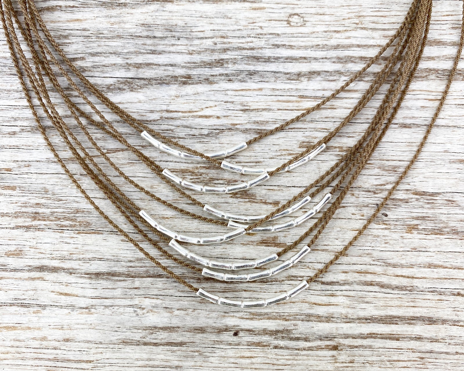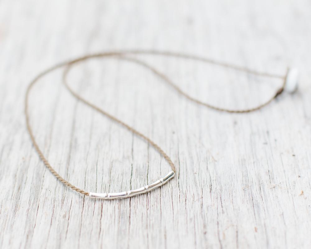 Sterling silver bamboo-shaped beads on hand-spun rope, 100% waterproof, perfect for travel and everyday.