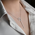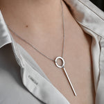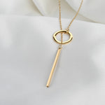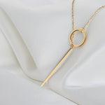 Circle Bar Y Necklace - Geometric Lariat Pendant