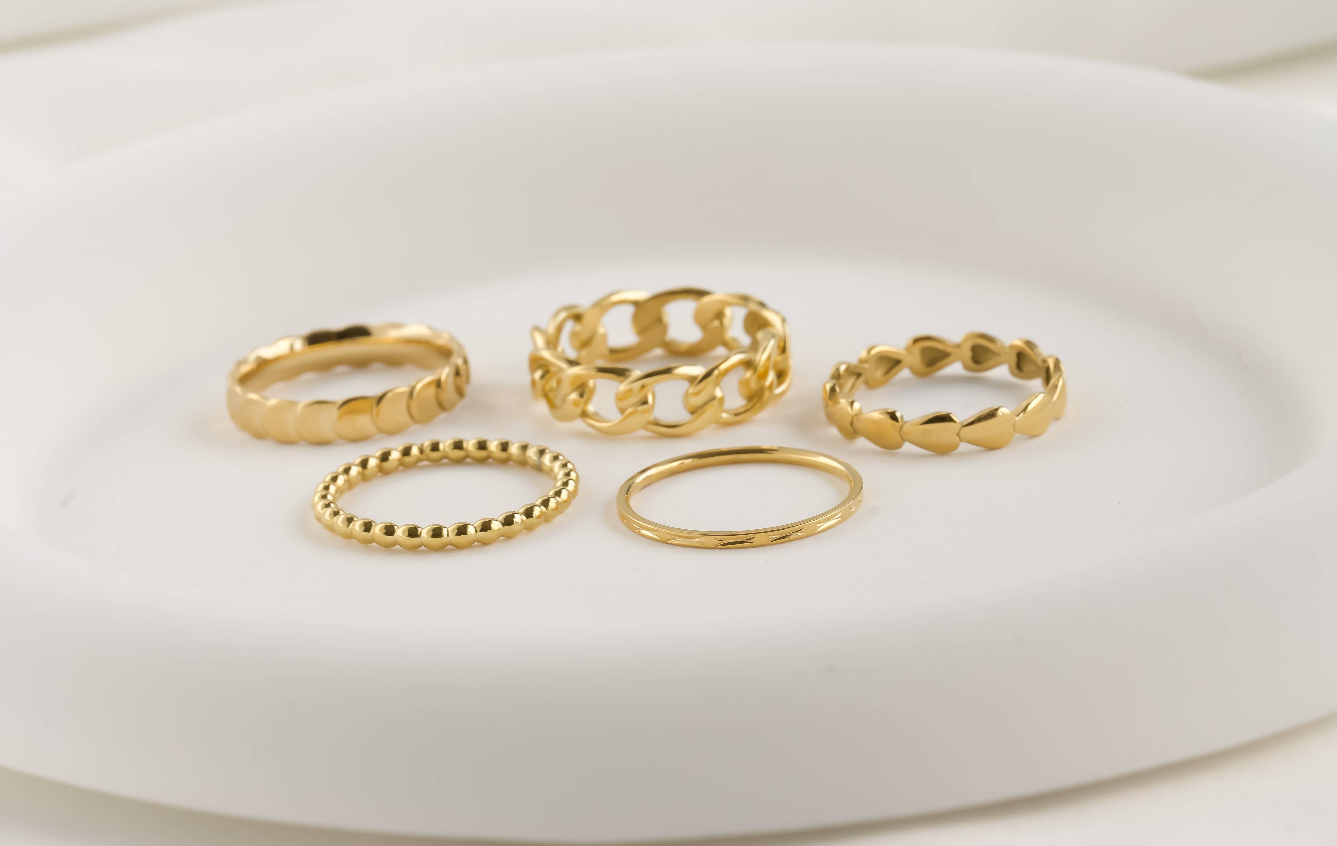 Dainty Gold Rings - Waterproof 18k Gold Stackable Rings