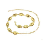 Mini floral design accent in silver and goldmake this version of a concho chain belt a perfect accent to any outfit. One size, adjustable.