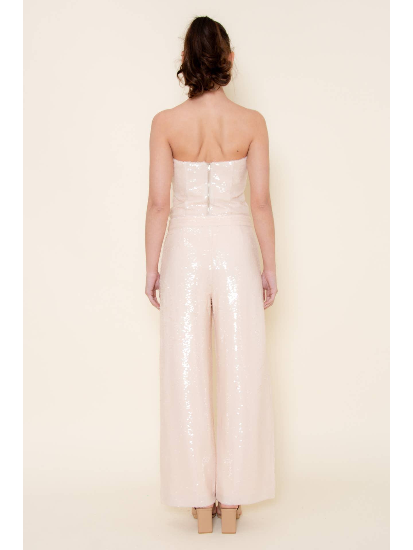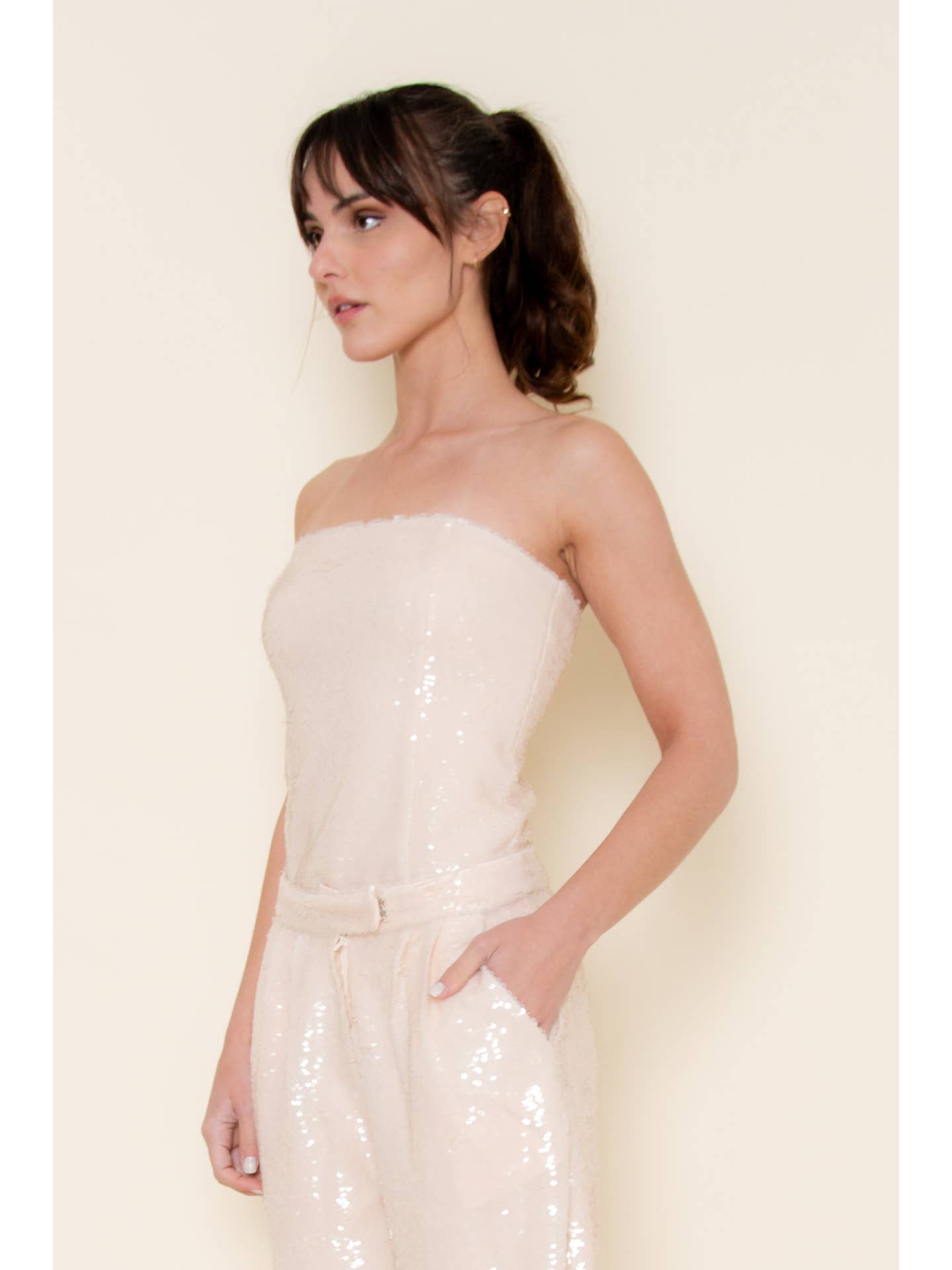 Turn heads with this dazzling piece perfect for holiday parties, cocktail events, or New Year's Eve . Full sequin coverage and a strapless silhouette, this top offers a bold, glamorous statement while highlighting the shoulders and neckline. Designed for figure-flattering fit, it pairs effortlessly with high-waisted skirts, tailored pants, or sleek jeans for versatile day-to-night styling. Hits low-waist, not cropped.