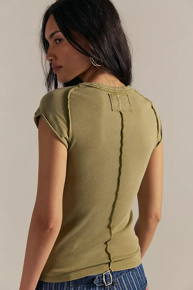 Your new favorite timeless tee from our We The Free collection, featured in a soft, ribbed knit fabrication and slim-fitting silhouette with raised seam detailing and cap-inspired sleeves.