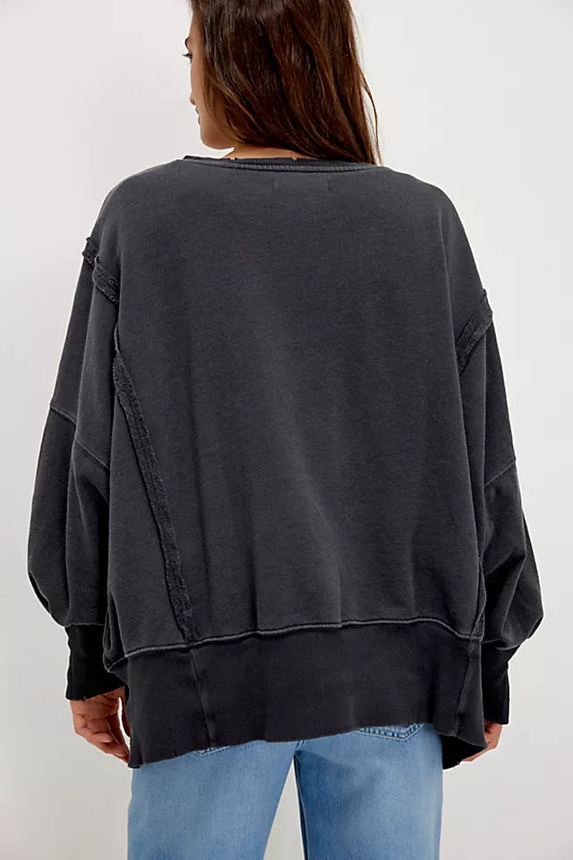 • Features: Dropped shoulders, side slits, ribbed hems, defined seaming