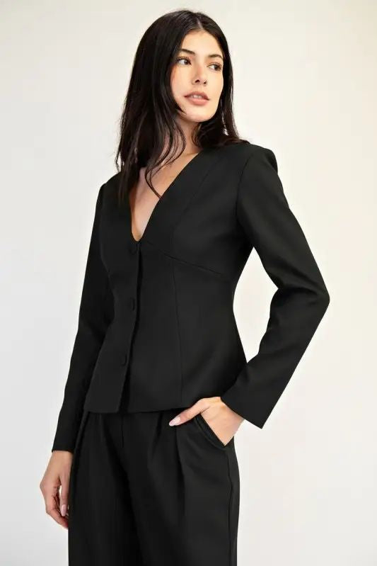 Deep V-neck Button Down- Blazer Woven Jacket
