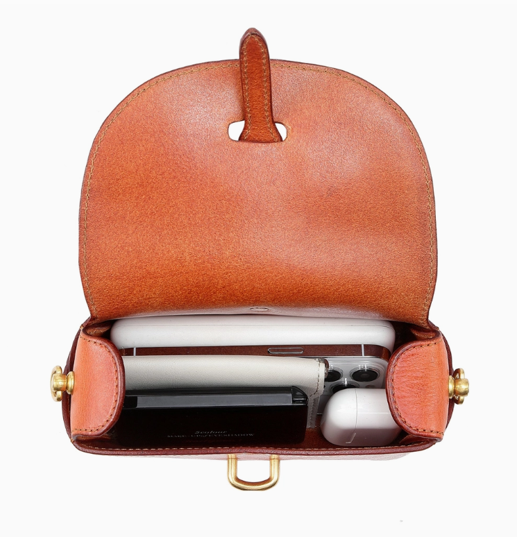 Quintessential leather in an modern minimalist shape, the Pamela bag will update and elevate every outfit in your wardrobe. The perfect caramel color in buttery soft hand washed eco leather, this little crossbody packs a punch. Just-right size makes it a cinch to carry for a night out or for some every day leather flair.