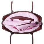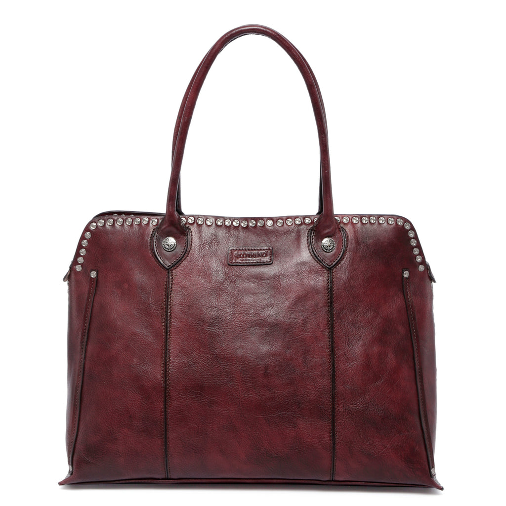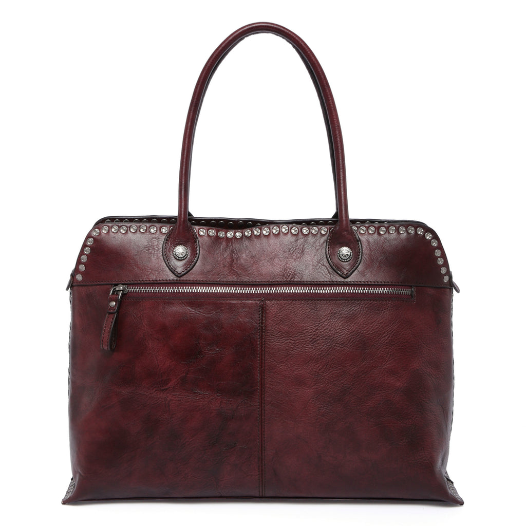 Beautiful leather + unusual detailing make this tote next level. Italian craftsmanship, 100% leather, and refined structured shape are all highlighted by an edge of decorative grommets in a softly patina-ed silver. Generous interior with pockets to keep you organized and on track, and extra long handles to make carrying this classic tote a breeze! The perfect accent for any workday.