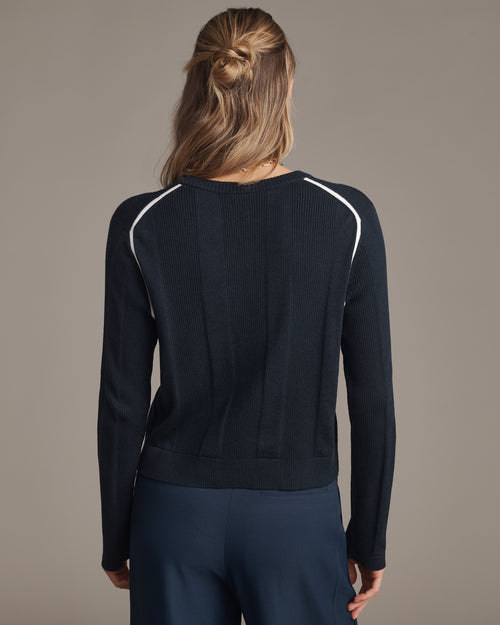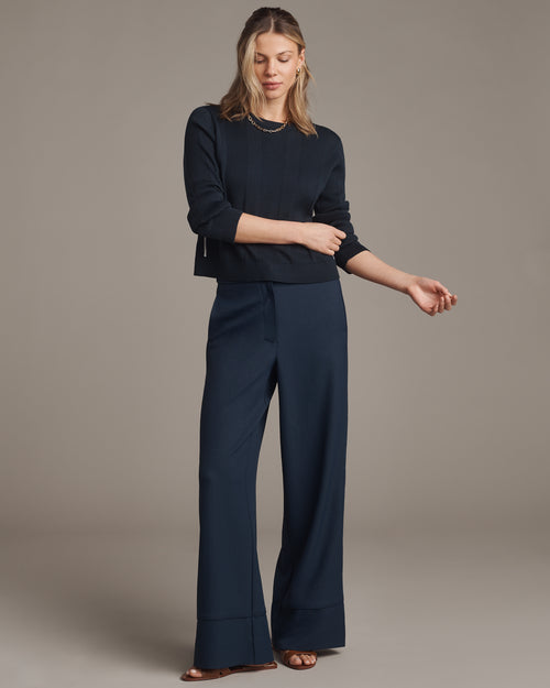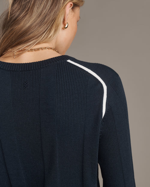 Understated yet refined, this navy pullover sweater offers a polished take on everyday comfort. With its clean lines and subtle textured knit, it’s the versatile piece your wardrobe will reach for again and again.