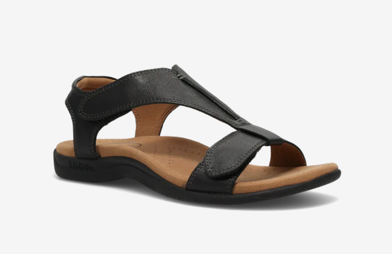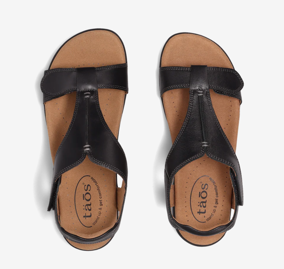 Welcome to The Show! This premium leather sandal has a patented shield strap design and two adjustable hook and loop straps for a secure fit. Detailed contrast stitching and seam design accent the upper. Luxe leather offers a rich look that is soft and wraps around your feet. With Taos's signature SOFT SUPPORT™ footbed lined with buttery soft microfiber, treated with an antimicrobial shield, your feet will stay cool and dry!
