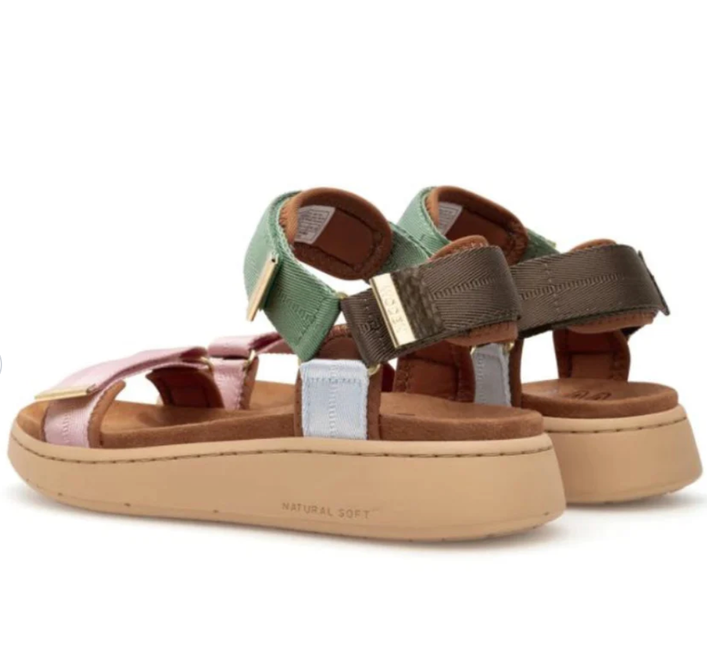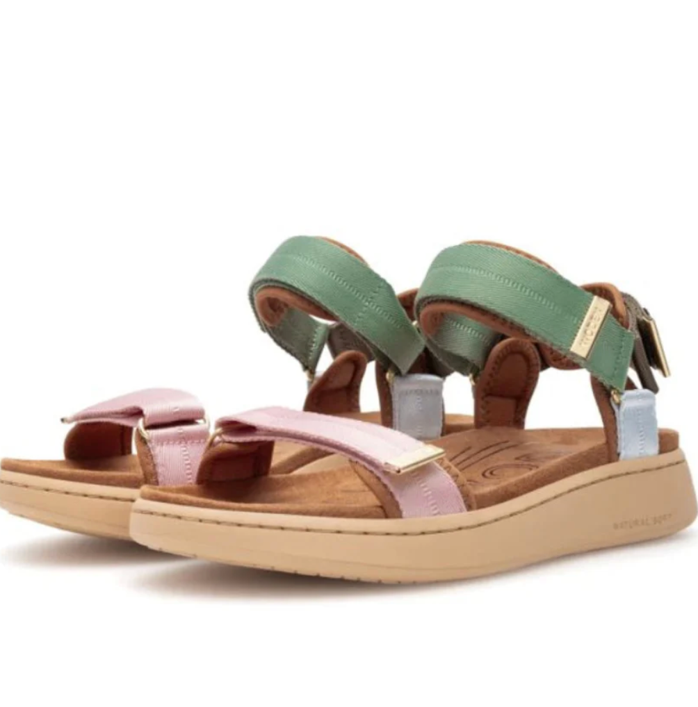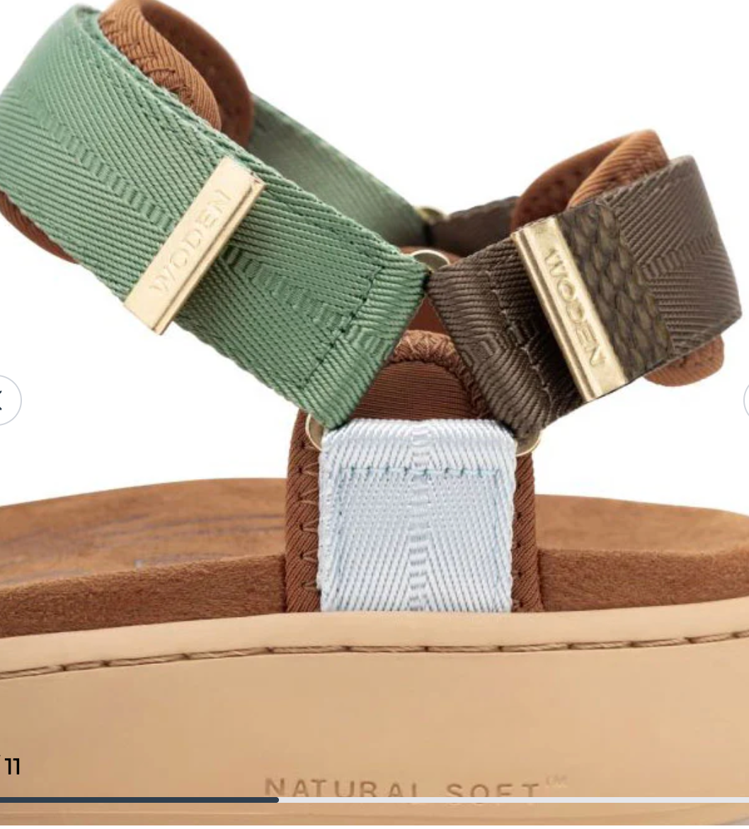 Woden's Line sandal combines textile, rubber, and fish leather for a stylish, breathable design. Adjustable straps and soft materials deliver all-day comfort, while Natural Soft technology outsole technology keeps your feet cool and supported. Perfect for travel and everyday wear. Three adjustable velcro straps.