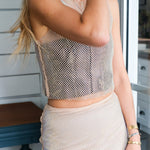 Sadie Sheer Rhinestone Top And Skirt - Taupe