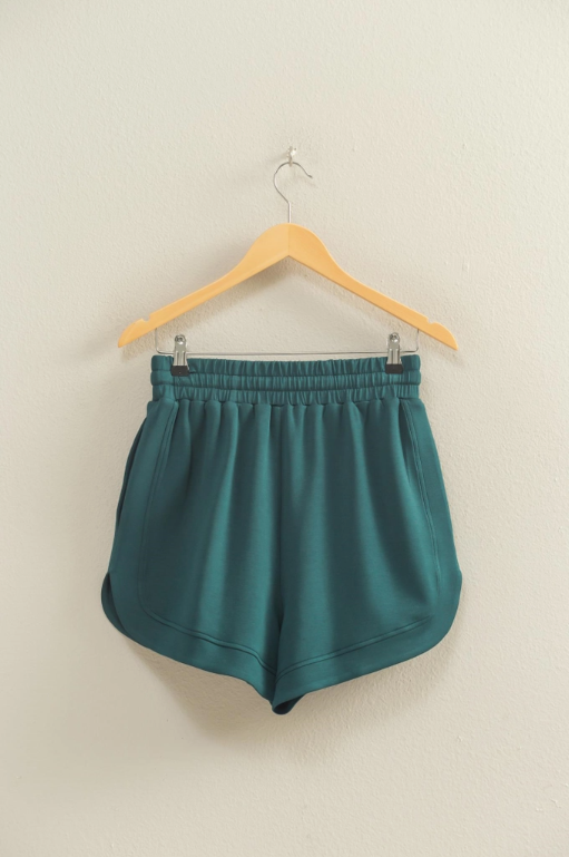 Soft and flowy, these easy-to wear shorts are the ultimate in comfy! A drawstring waist, side pockets, the coziest scuba fabric, and an easy slouchy fit make these the perfect loungewear pair.