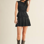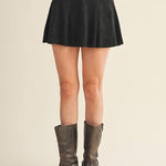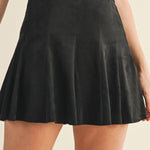Flared Faux Suede Skort - Black