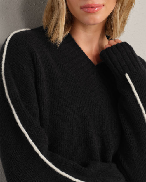 Zuri Vintage Style Polo Sweater - Sapphire/Latte