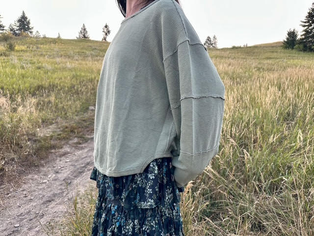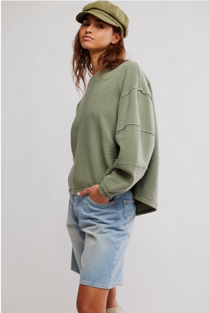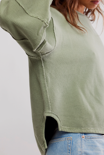 Elevated basic tee by Free People, the total eclipse tee is pure luxury!  Comfy ribbed knit in an oversized shape, with seams and scooped neck.  You will be lounging in this tee all season long!