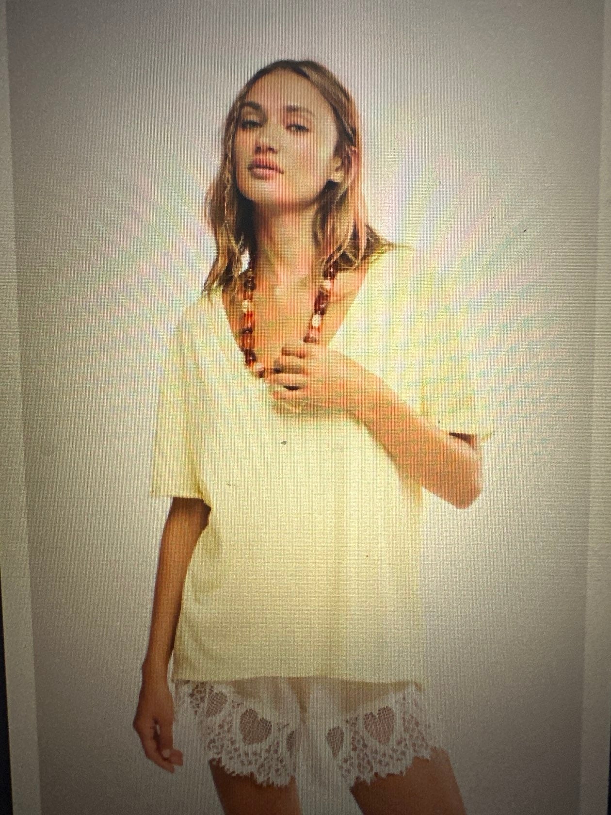 V-neck Collar Short Sleeve Crop Knit Polo - Butter