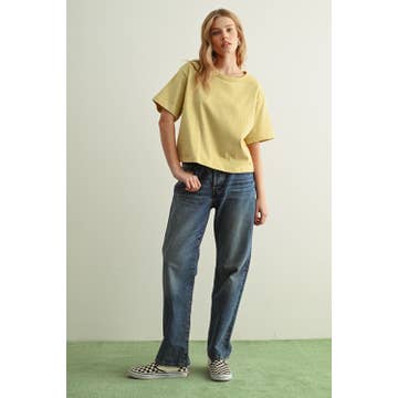 Short Sleeve Linen Knit Top - Lemon