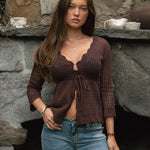 Sweaters Ashlyn Crochet Scalloped V-neckline Cardigan- Brown