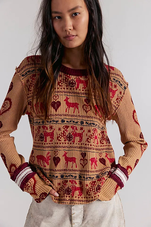 Effortlessly cool and perfectly relaxed, this waffle-knit long-sleeve from our We The Free collection brings a laid-back touch to every look. Finished with contrast trim and printed details, it’s an essential layering piece for year-round wear.
