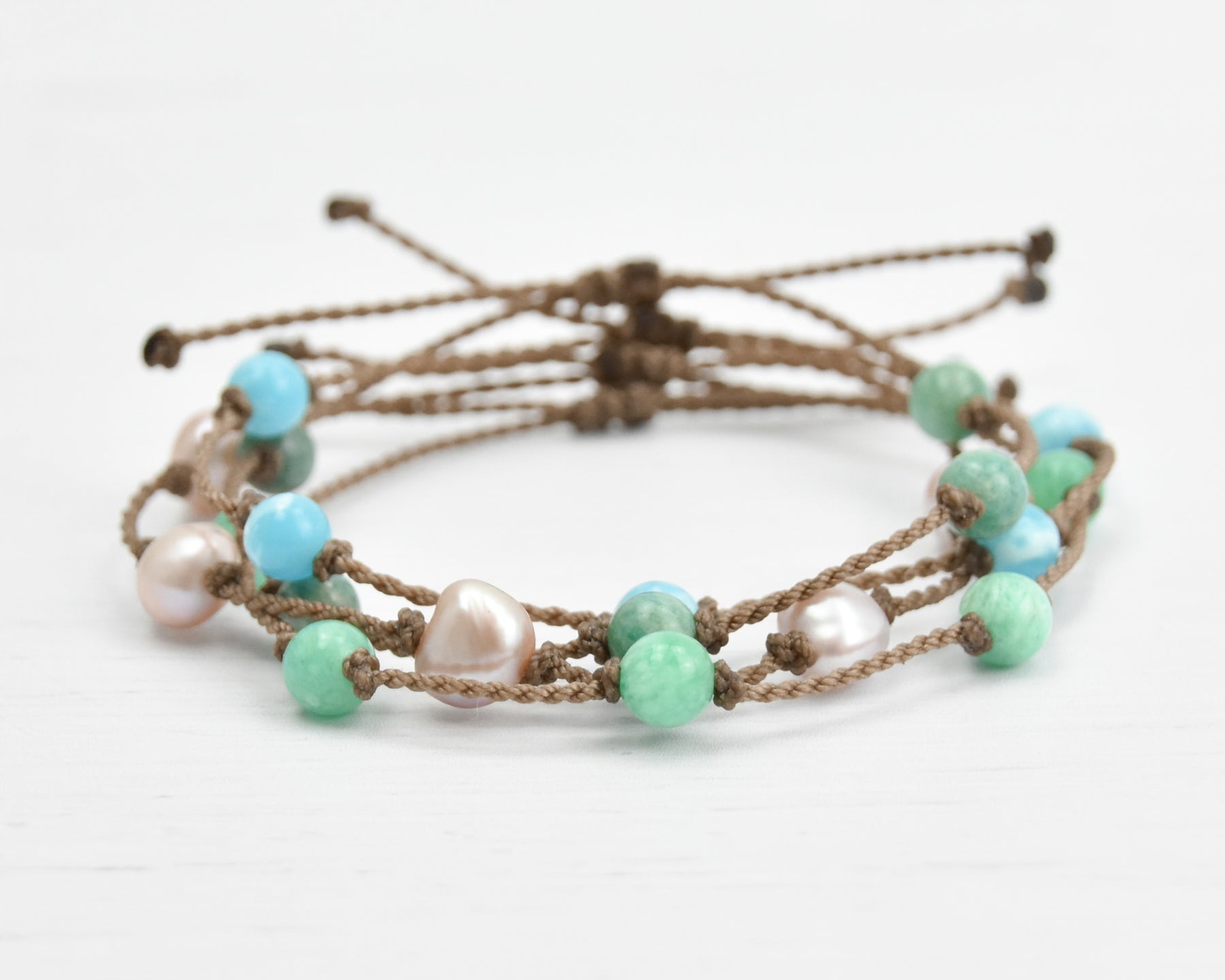 Playfully dainty, the petite stone bracelet is perfect for any occasion. Wear your Amazonite bracelet on its own for a minimalist moment, or layer it with others for a bold statement.