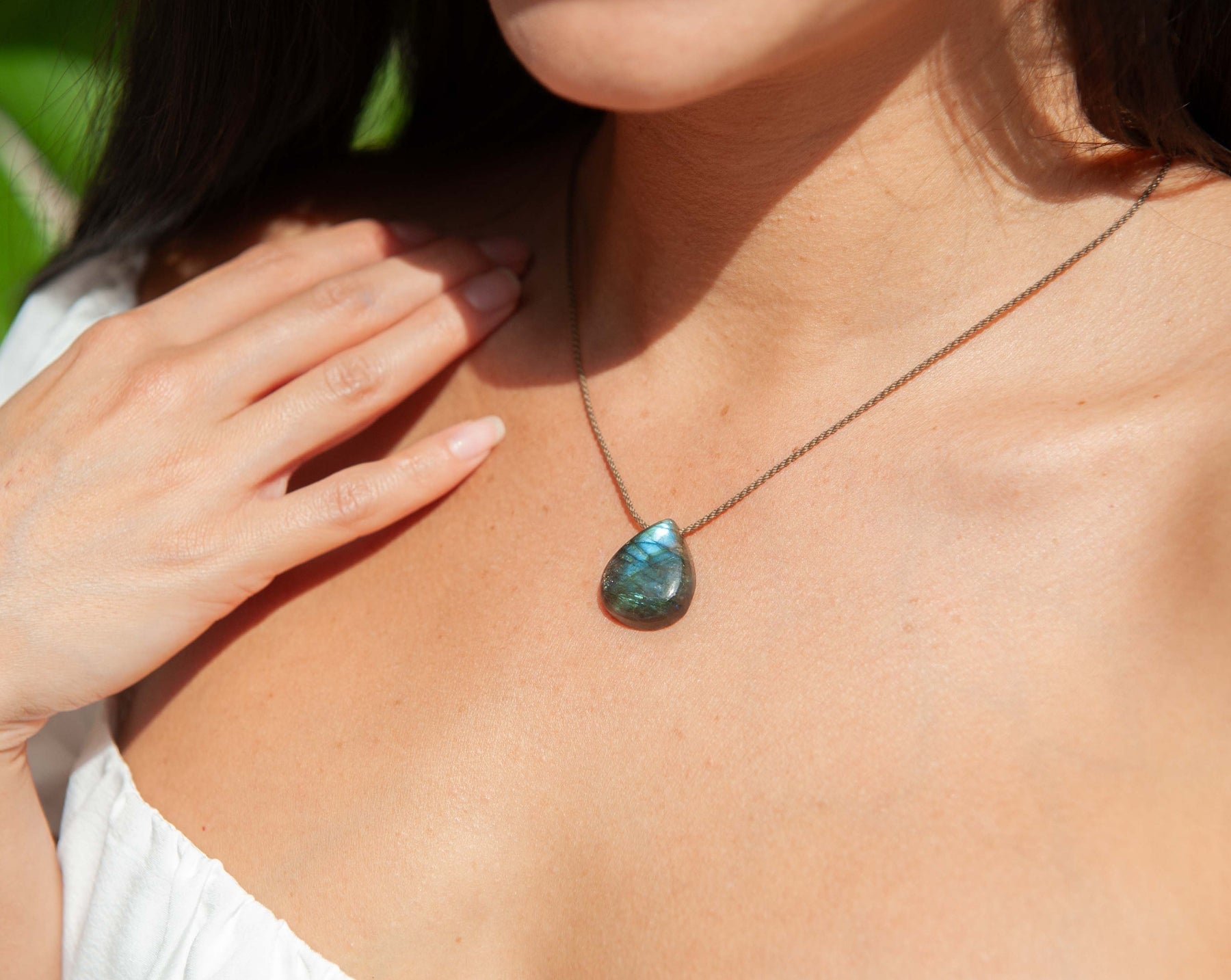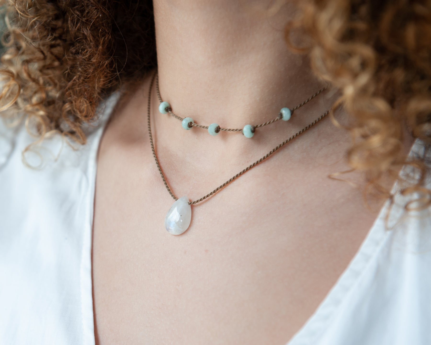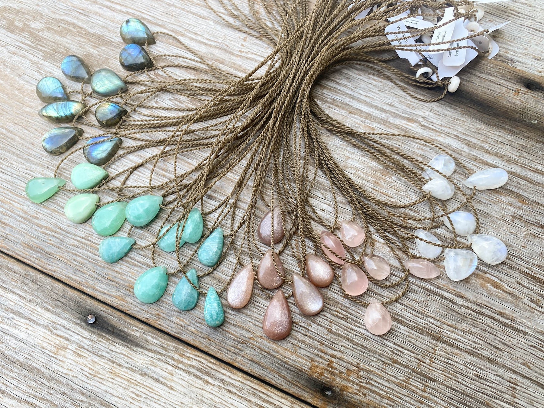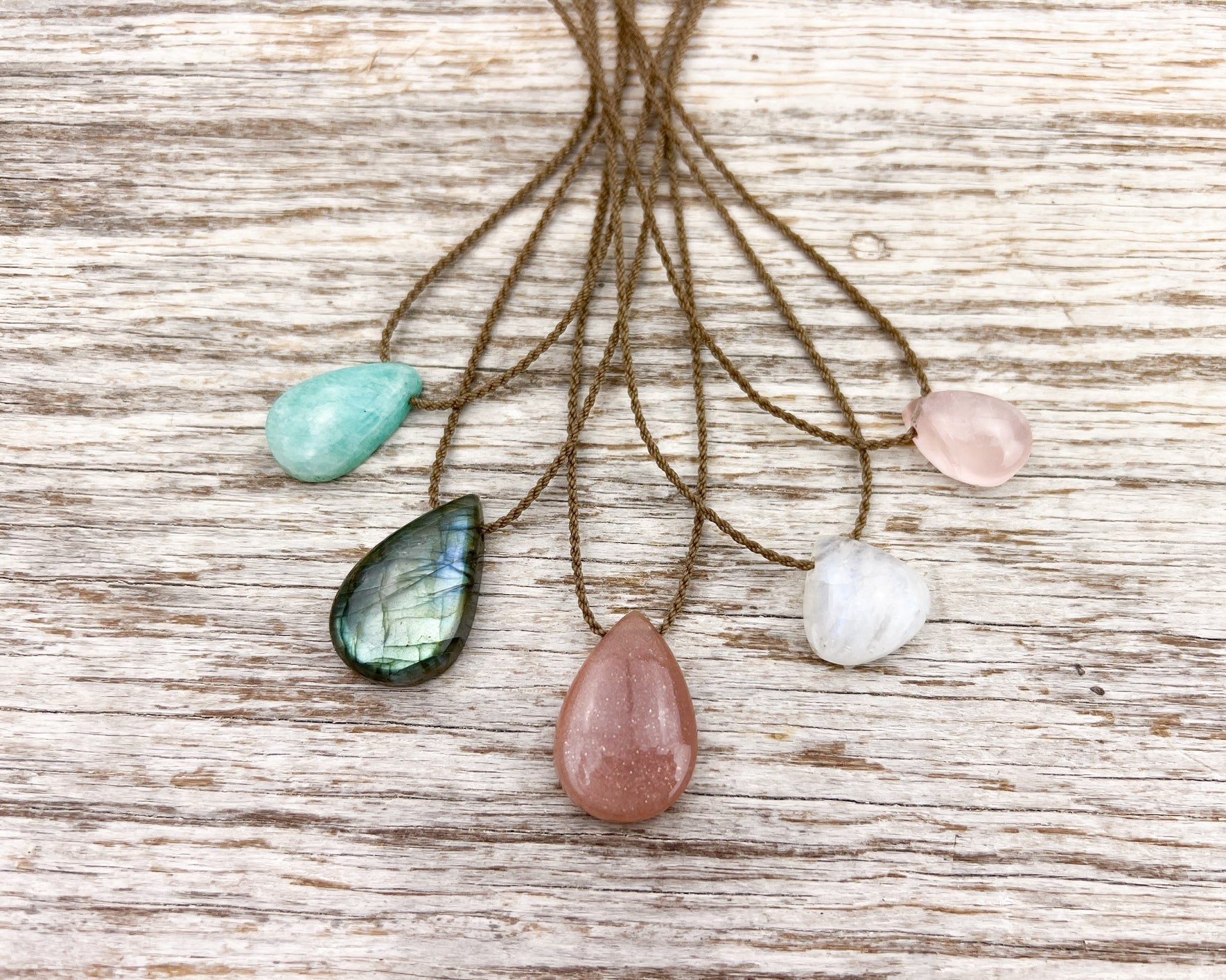 - Teardrop Amazonite, Labradorite, Sunstone, Moonstone, or Rose Quartz; sizes vary