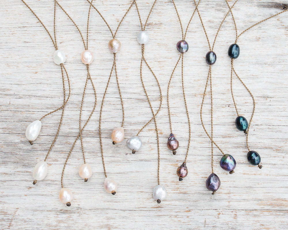 Tula Tie Necklaces are available in 4 colors of freshwater baroque pearls (10-12 mm):