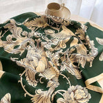 Large floral print silk scarf 90 x 90 cm (35 inches) in red or green. Truly a scarf lover's dream. Style as shawl or wrap with any outfit, summer or winter. 100% silk.
