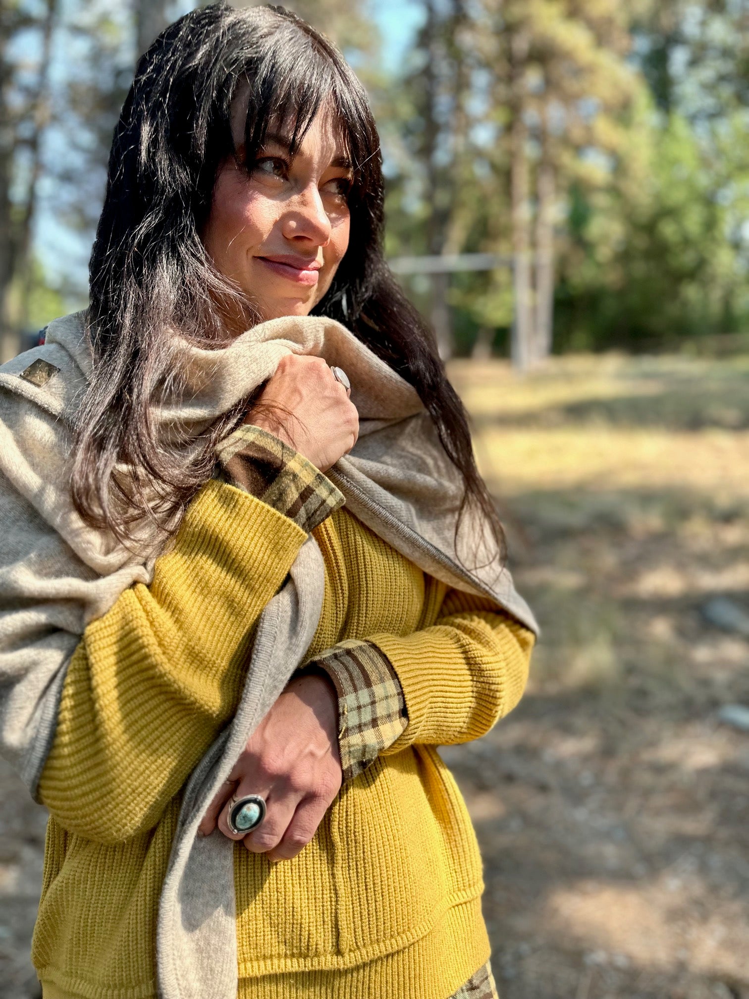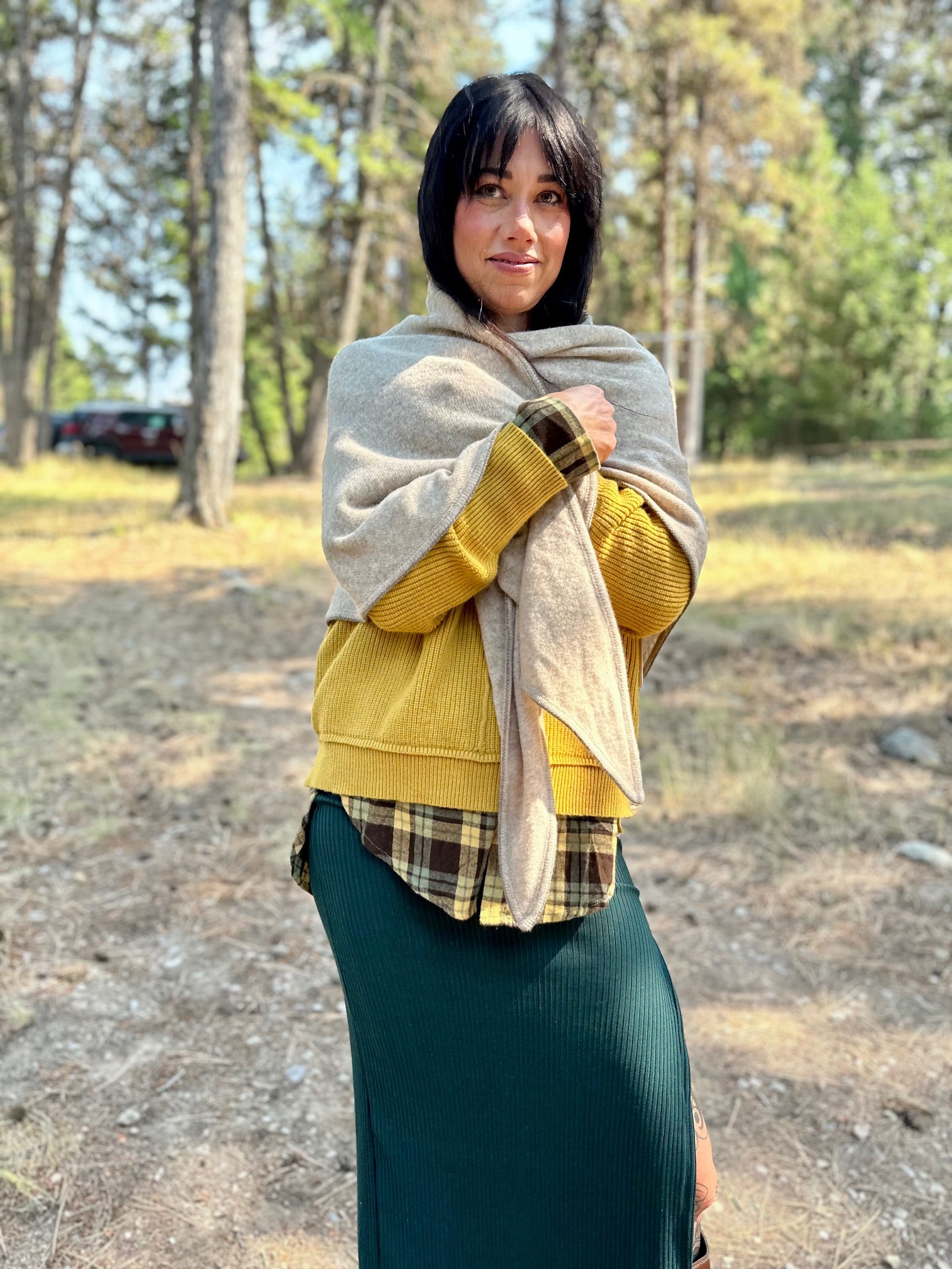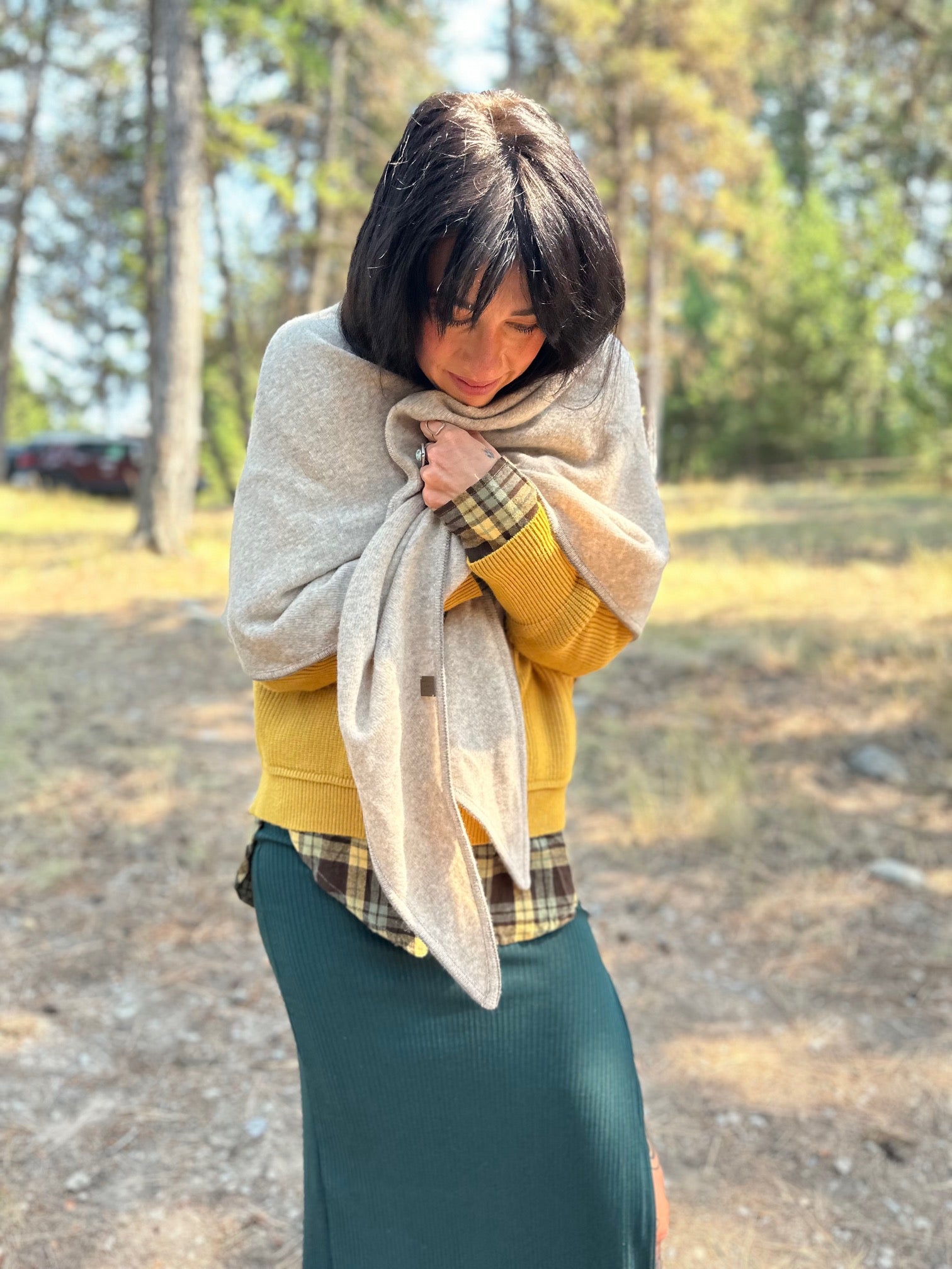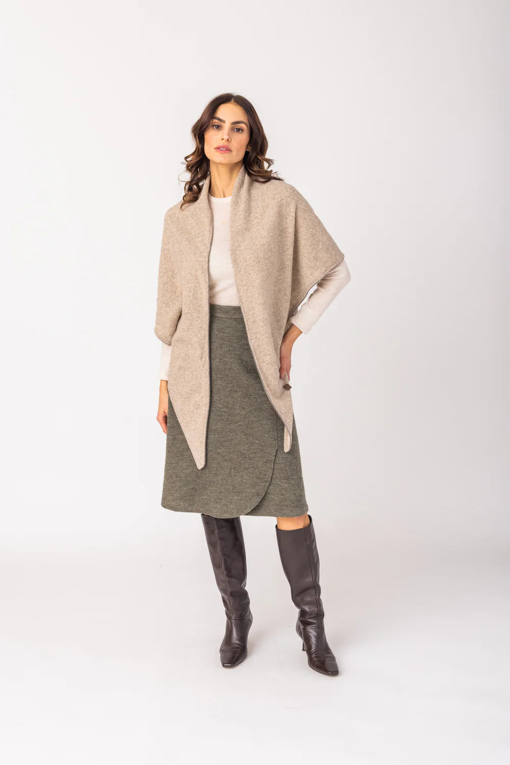 The Bibi is a light, cozy triangular scarf made from finest lambswool felt, with chainstitch borders and a luxuriously soft feel. Versatility in style, this wrap can be worn as a scarf, poncho, or used for travel. The ultimate luxury gift! Made in Austria.