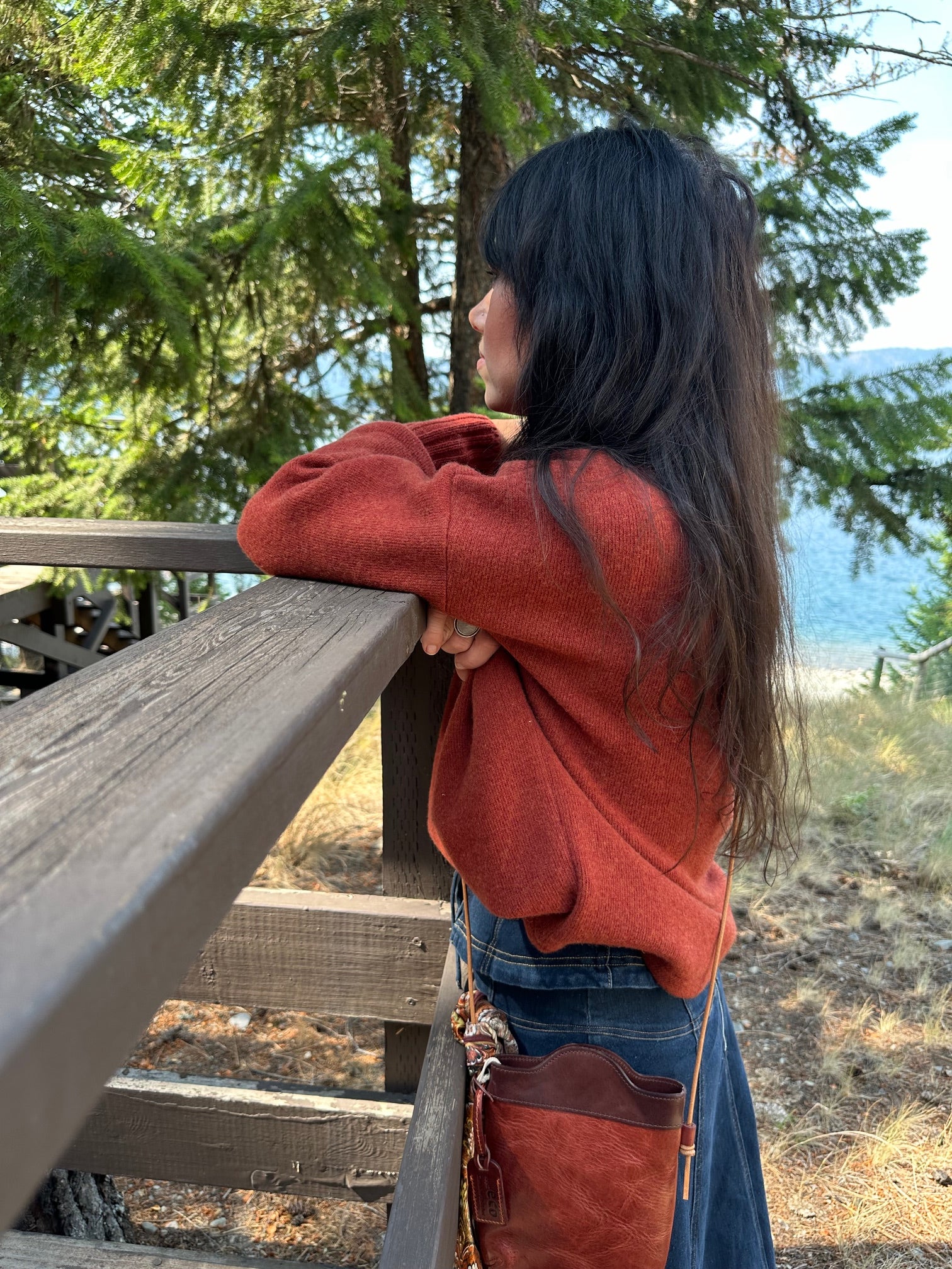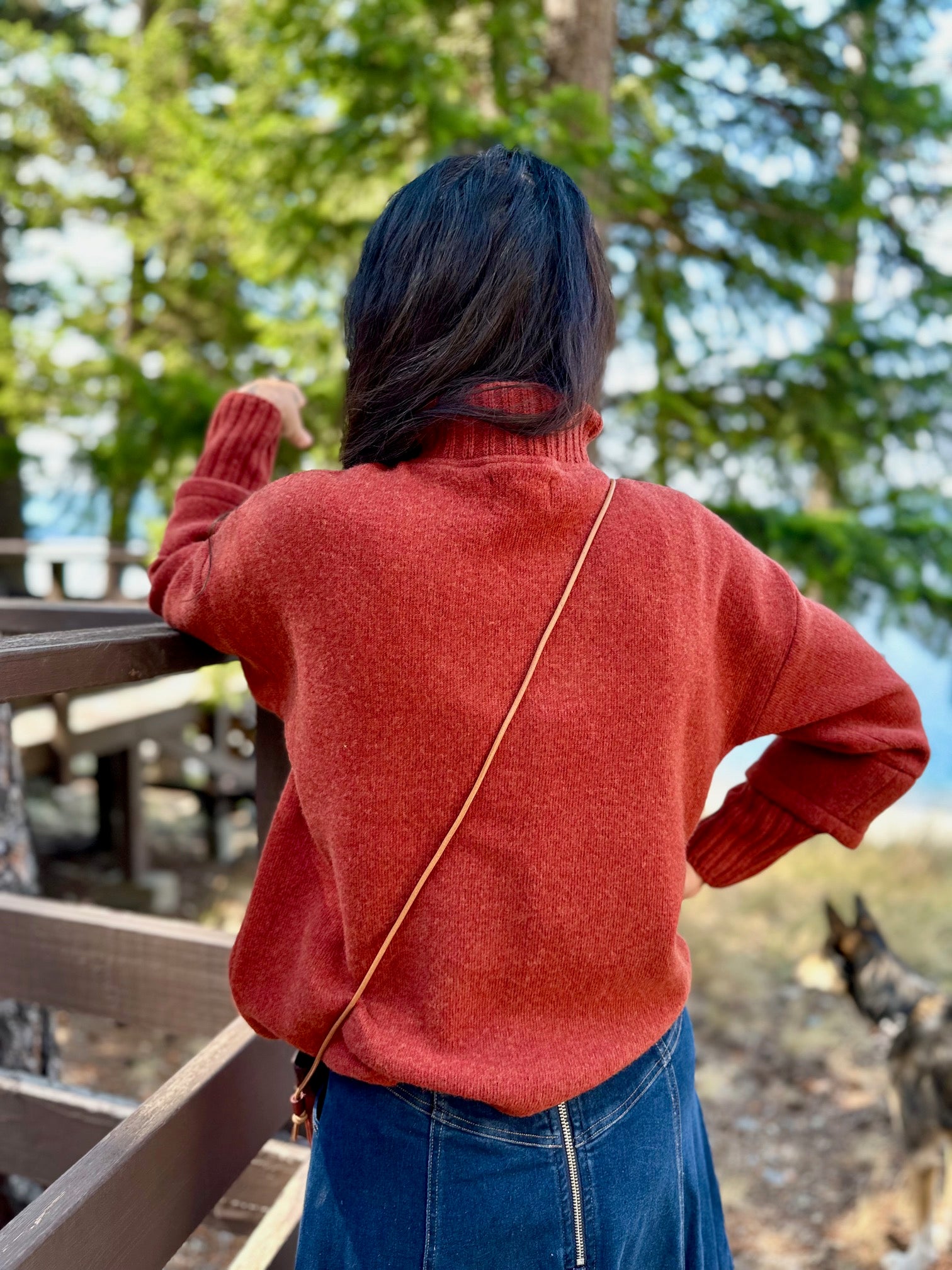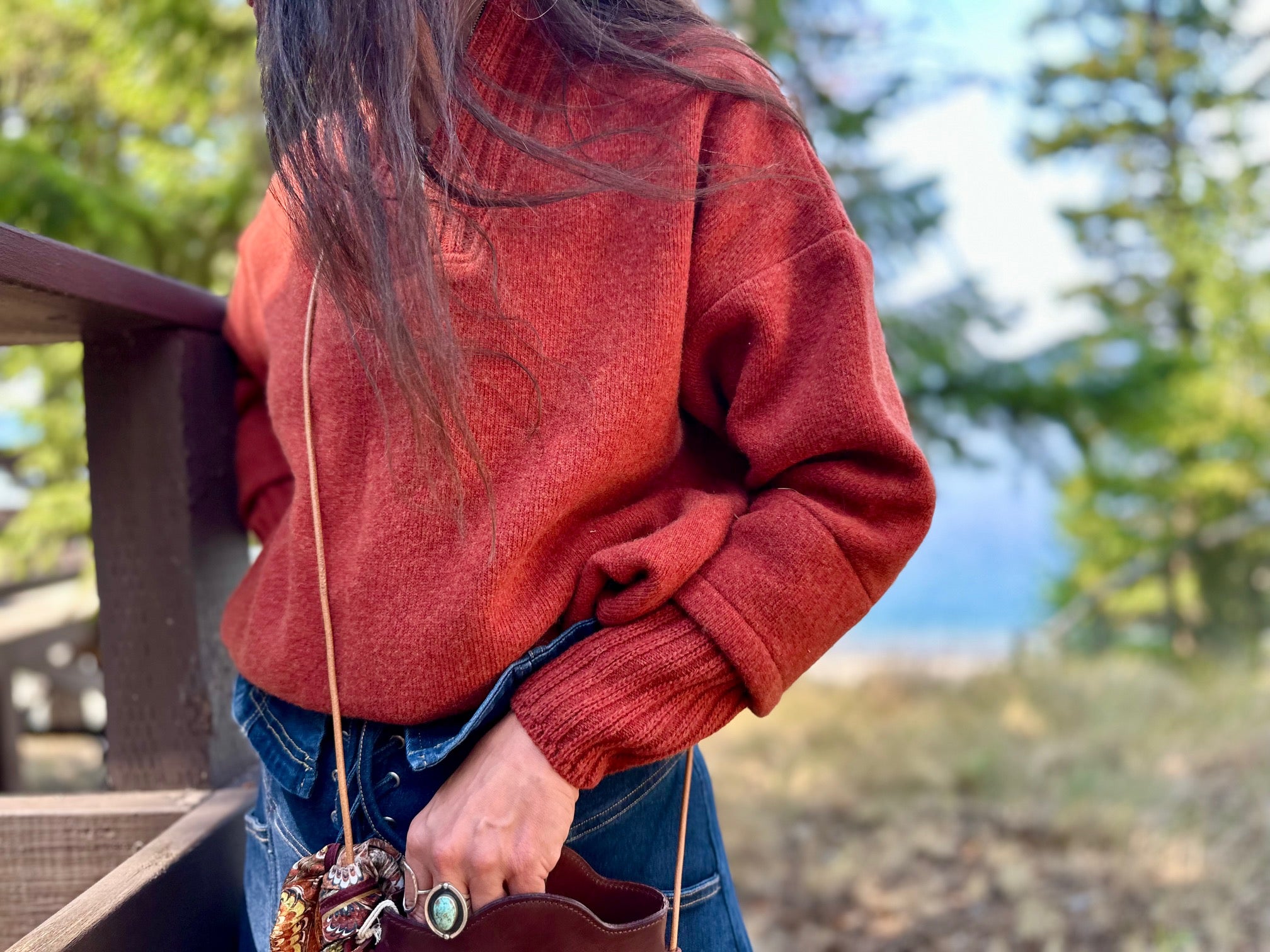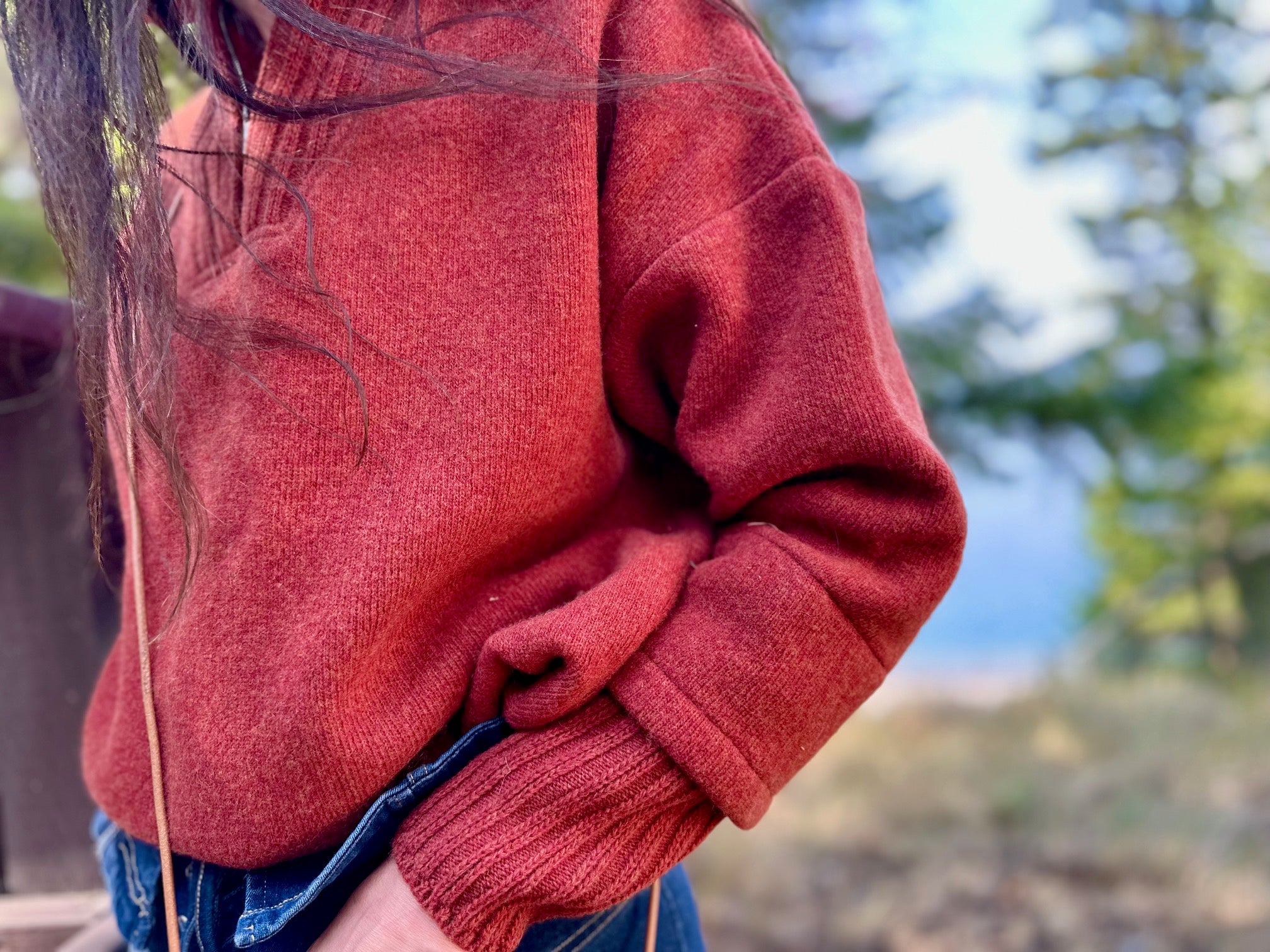 Meet the Naomi: Warmest of the warm, this cotton-wool sweater features a distinctly European shape in a standout color. A high funnel-neck, with a functional half-zip and faux rib-knit overlap detailing make this sweater feel substantial and luxurious, a comfort for Montana's cold. You'll wonder how you ever lived without it! Natural dyes and unique manufacturing process ensure that you can feel good about the sustainability of your sweater. Made in Austria.