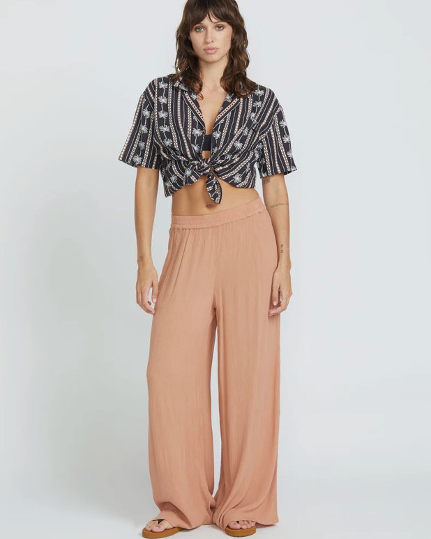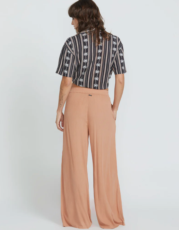 - Pull on beach pant with elasticized waistband and wide leg fit