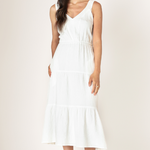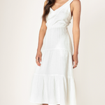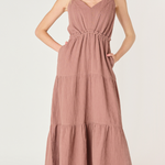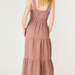 Possibly our most comfortable dress! This textured gauze dress is incredibly soft and features an elastic waist and smocked back for supreme comfort. This dress hits between knee and ankle and perhaps most importantly -- it has pockets!