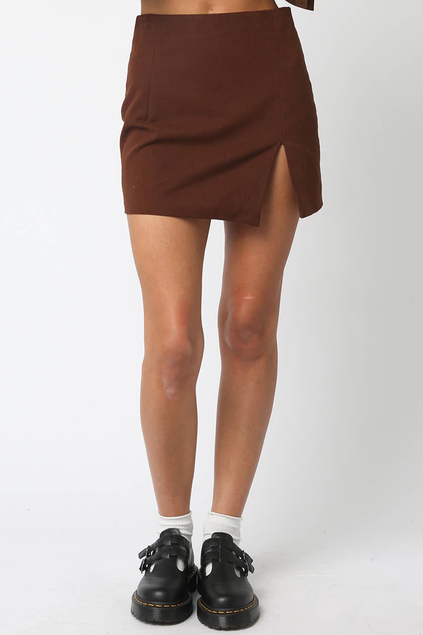 Aylin Slit Mini Skirt - Brown