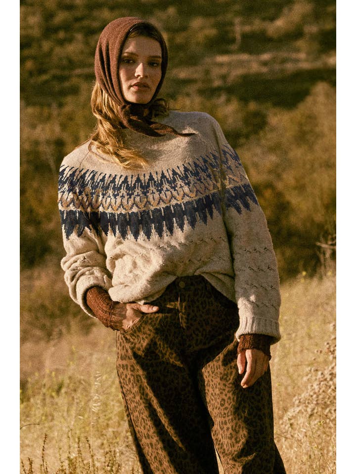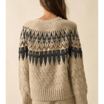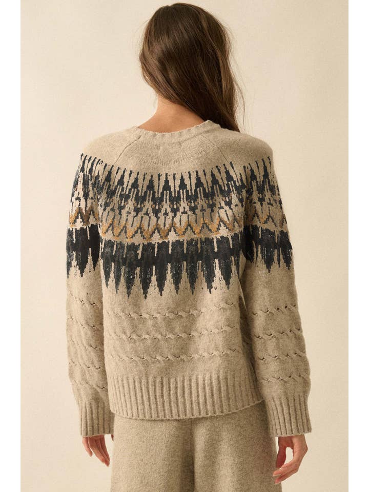 Cable Knit Fair Isle Raglan-Sleeve Sweater - Oatmeal