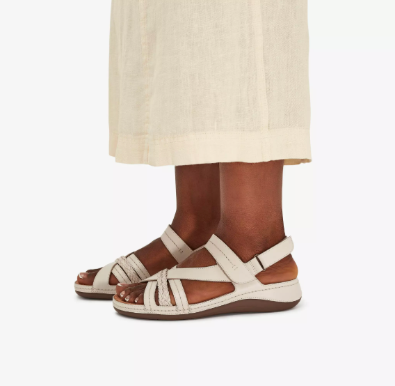 Cecily is an everyday sandal crafted from supple cream leather, and boasts Clarks' contour footbed and suede sock lining to wrap feet in ultimate comfort. It both flexible and supportive – weather you are heading to the local farmers market to touring a new city.