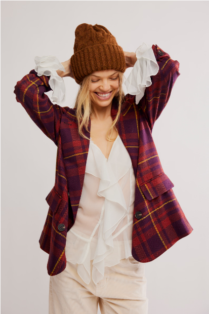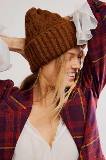 It's beanie season! Welcome fall with this staple beanie that features a cable knit top with a wide rib knit fold-over detail. Sweet and simple and in 3 of fall's boldest colors, you can collect them all!
