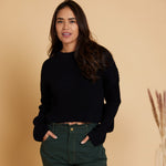 This is one of our favorite ribbed-knit sweaters -- slightly cropped so it hits at just the right spot, no too tight or too loose (goldilocks approved). Handmade from 100% cotton, it is the perfect layer for cooler temps.