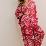 This oh-so-essential pajama set is perfectly slouchy and sexy. A silky long-sleeve top and matching wide-leg bottoms with adjustable drawstring.