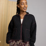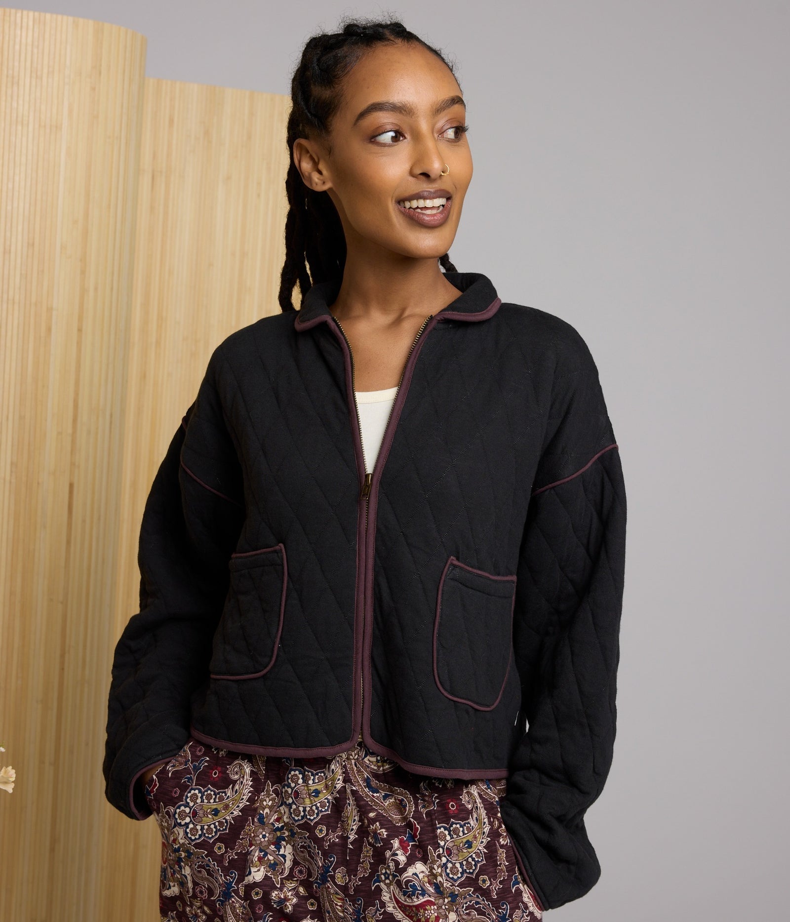 Our favorite lightweight quilted jacket! The contrast details, the roomy fit, and the pockets make this a head turner. Roomy enough to wear over a sweater, but light enough as a layer under your winter wool or down coat. An ideal travel piece.