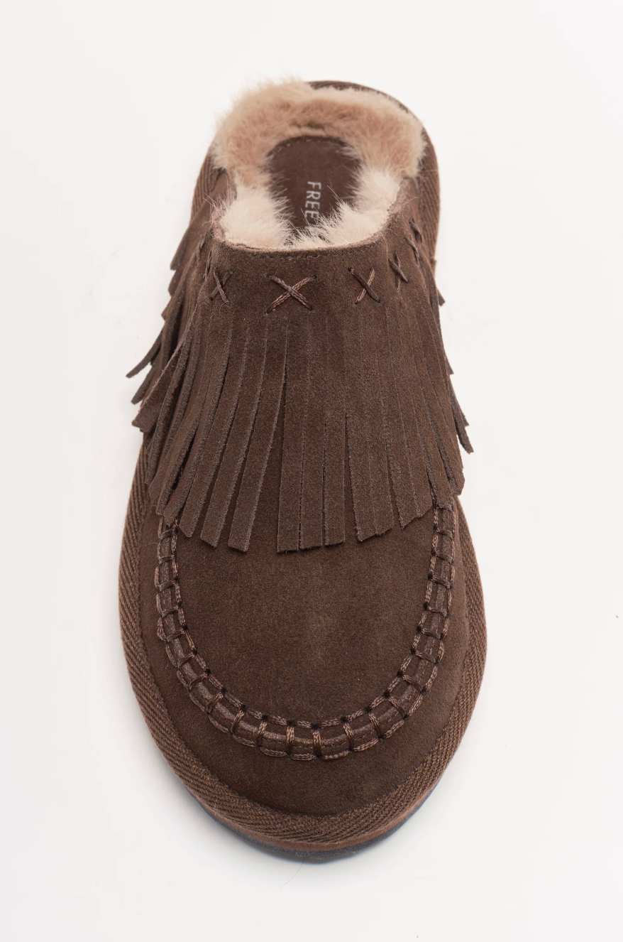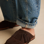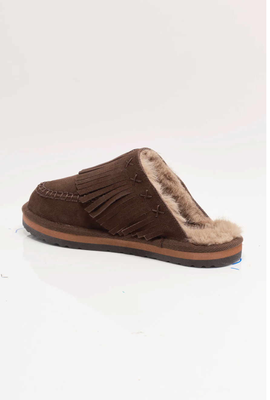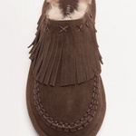 Oh my, a Moka favorite! Sherpa lined suede mules with a sassy fringe, stitched detailing and amazing rubber outsoles so you can wear them anywhere! Perfect as a gift, even if it is just for you.