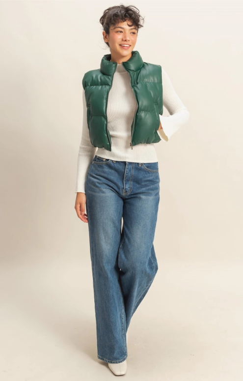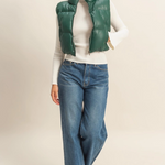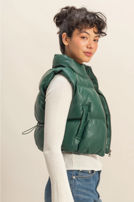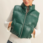 Faux Leather Puffer Vest- Dark Green