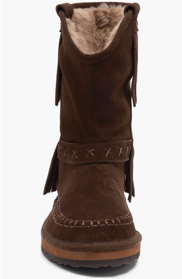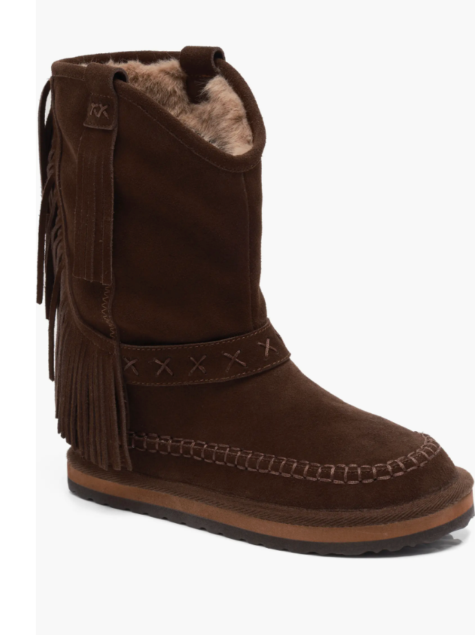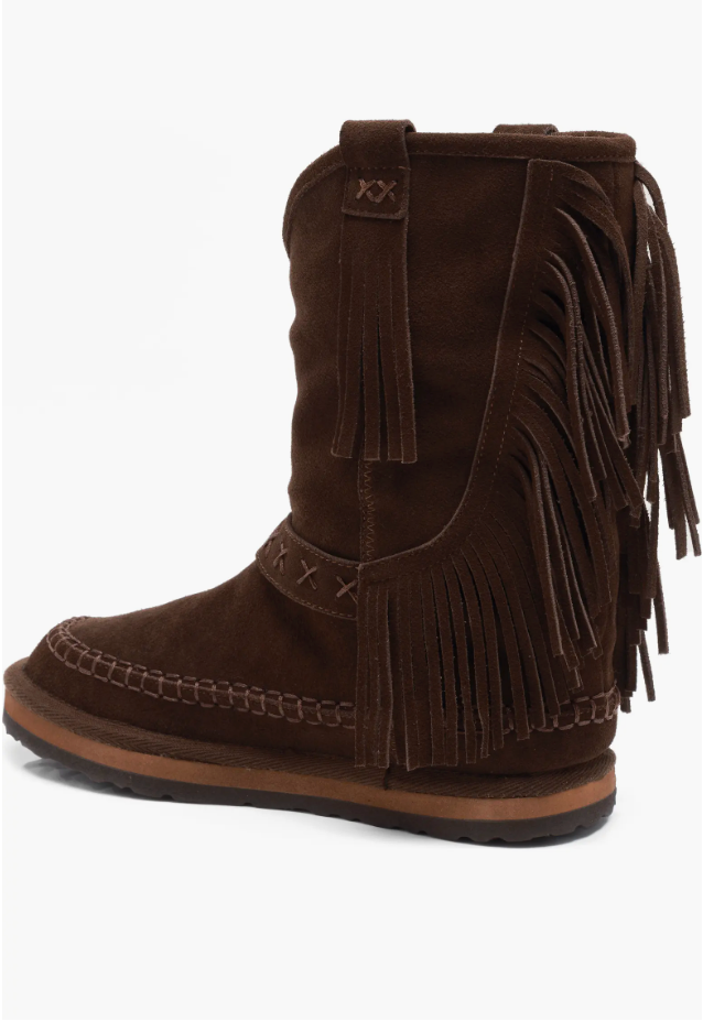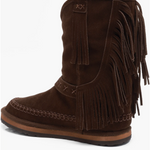 Faye Fringe Pull On Boots- Chocolate Suede