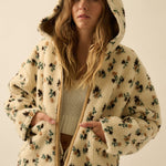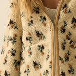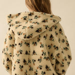 Floral Sherpa Fleece Hooded Zip-up Jacket - Cream