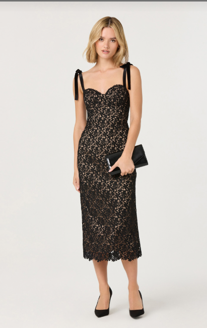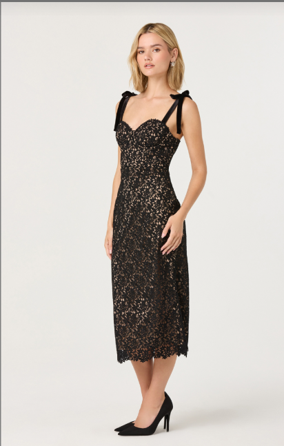 Look elegant and effortlessly put together, with a sweetheart neckline complete with underwire cups and lace details, a corset-style lace up back, center back slit, and plush velvet straps that tie just so in this timeless dress by ASTR the Label.  A concealed side zip and silky beige lining make the black lace the center of attention.  Wear this amazing dress to just about any event in your life, from holiday parties to summer weddings and everything in between.