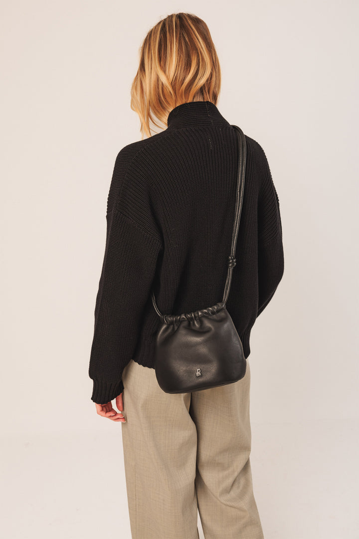 Elegant simplicity crafted in 100% leather, this bag by Indi & Cold is ready to be your companion through all your daily adventures. Knotted details on its adjustable style strap give this bag a chic touch, while the cinch top and bucket shape are pure function.
